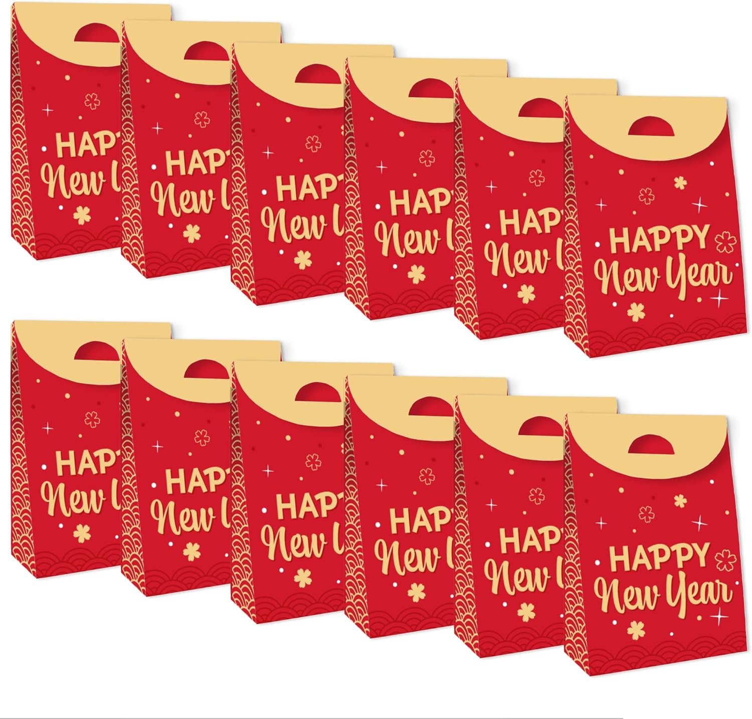 High-Quality Supply: Happy Lunar New Year Party Goodie Bags are professionally printed double-sided on heavy-duty cardstock paper with a photo-like shine. They are individually inspected and then carefully packaged by hand.