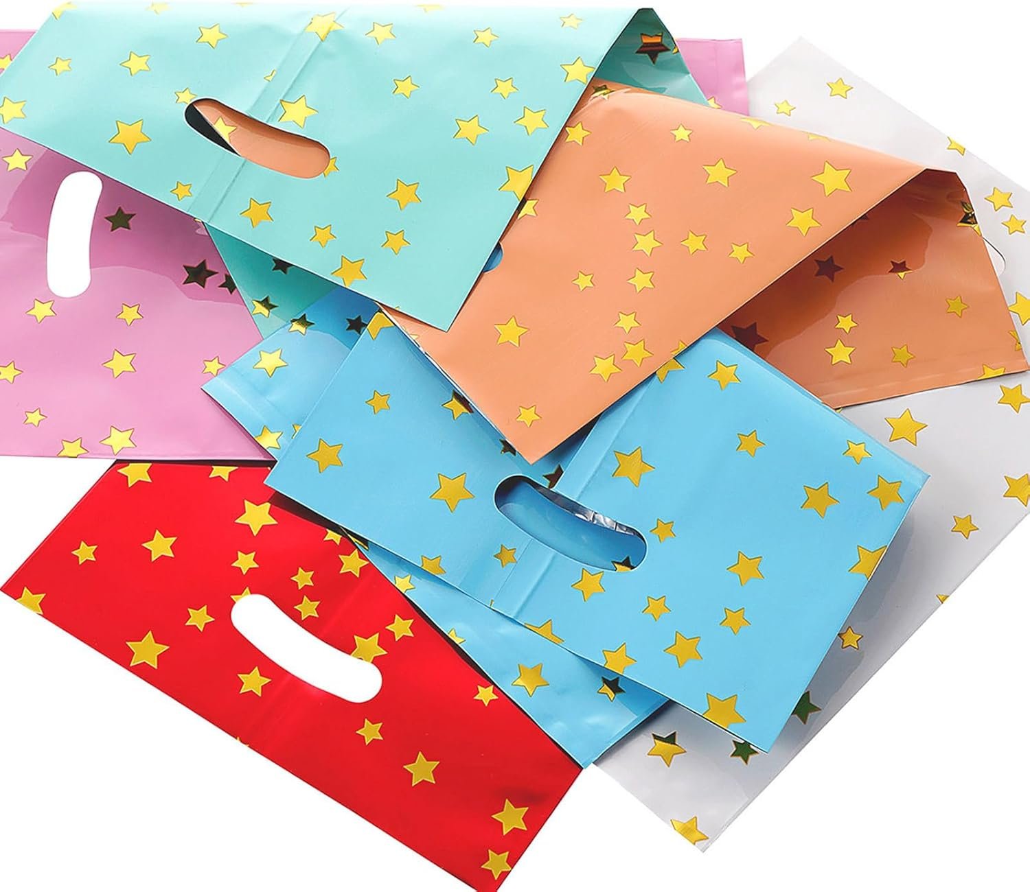 Customers find these goodie bags perfect for birthday parties, appreciating their simple design, durability, and color variety. They are super thick and able to hold a lot of stuff, making them good value for money. The size receives mixed feedback – while some find them perfect for filling with party items, others say they’re too small.