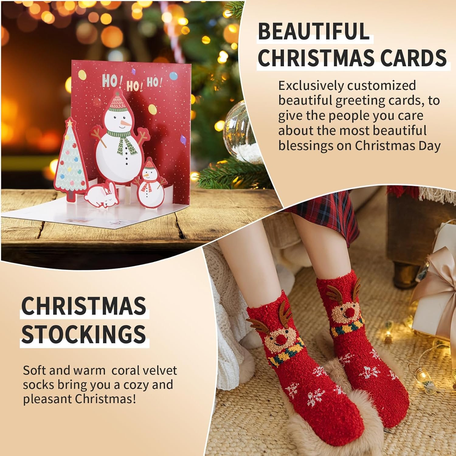 ✨【Funny Christmas Gifts】Imagine the joy on her face when she receives her Christmas gifts. feeling the comfort and warmth of the red plush socks on her feet, sipping coffee from her new favorite Christmas cup; reading the Christmas card with your handwritten blessings. This will surely be her happiest day!