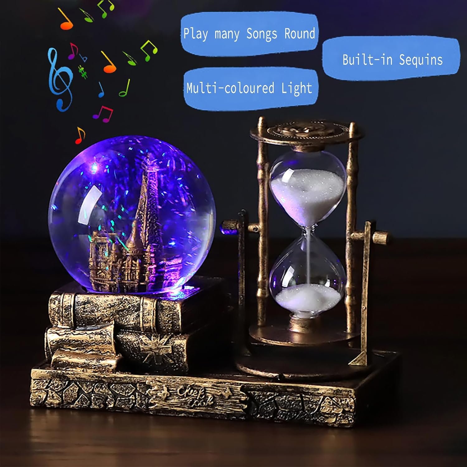 【 ROTATABLE & DETACHABLE 】- The snow globe with detachable hourglass, beautiful and practical hourglass device, free flip and disassembly, more convenient to use, when you are tired of working, it will be a good release pressure toy for you.
