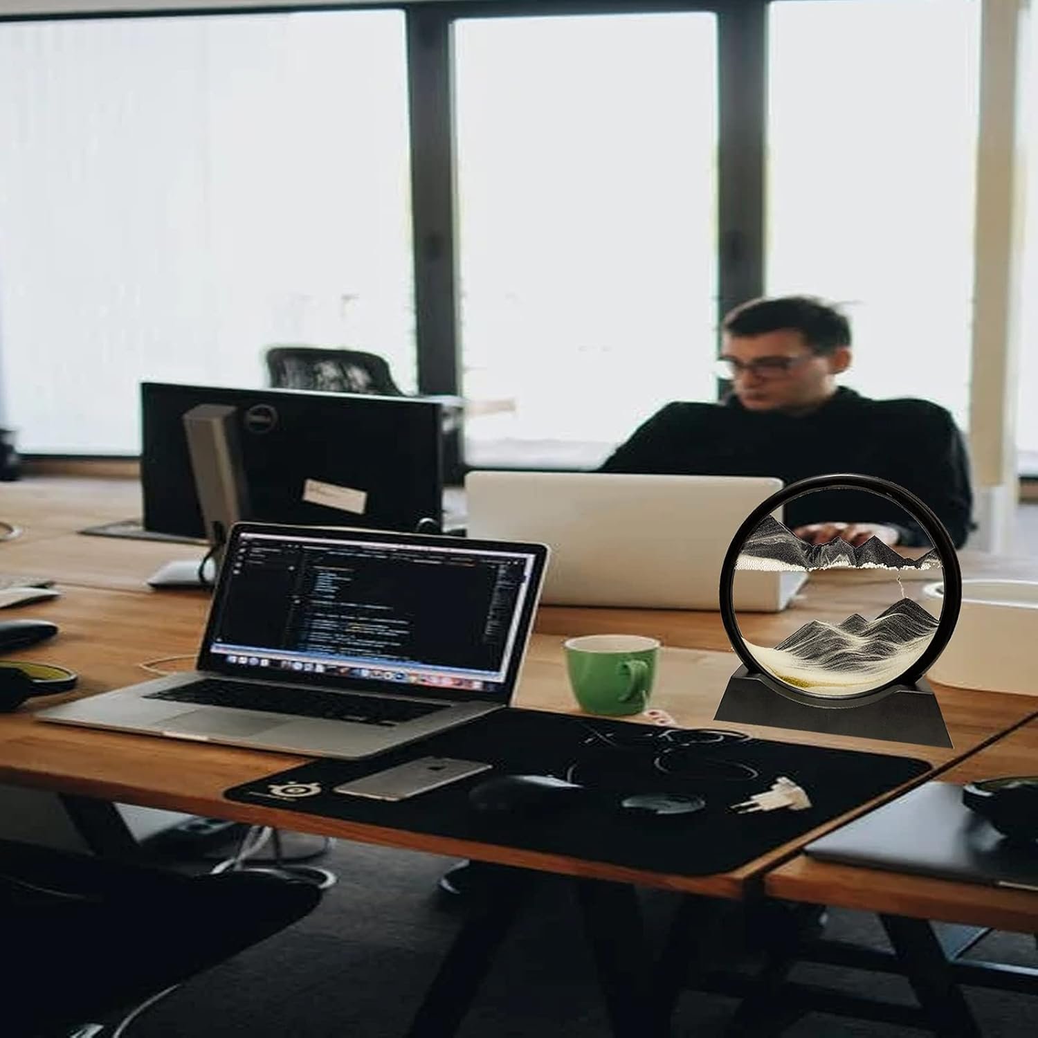 Sand sculpture is great for office workers to relieve stress and soothe emotions.When you are tired from work, watch the sand fall slowly, it takes you into the sand world of Zen.Liquid sand art will change to deep ocean, vast starry sky and towering mountains, you will look forward to every beautiful picture.