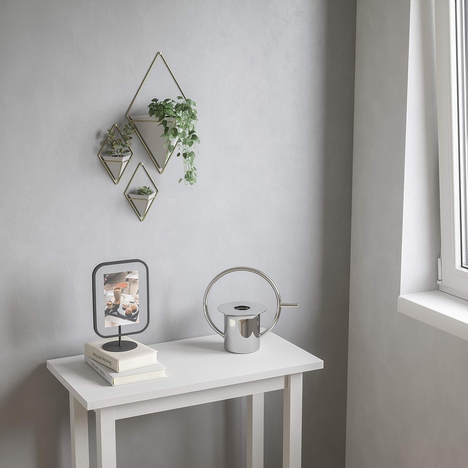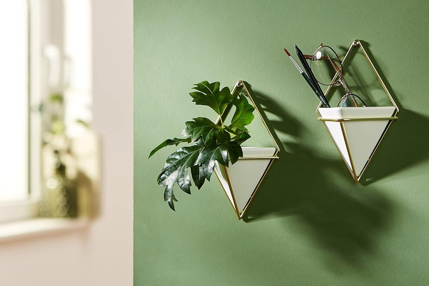 VERSATILE OPTIONS FOR WALL OR TABLETOP: Trigg is available as wall décor or desk décor, comes complete with easy to follow instructions, and can be used to hold everything from greenery to office supplies