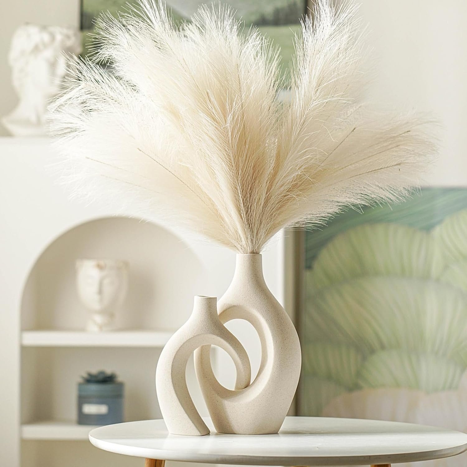 white boho modern ceramic vases for home decor, aestheti vase for pampas grass