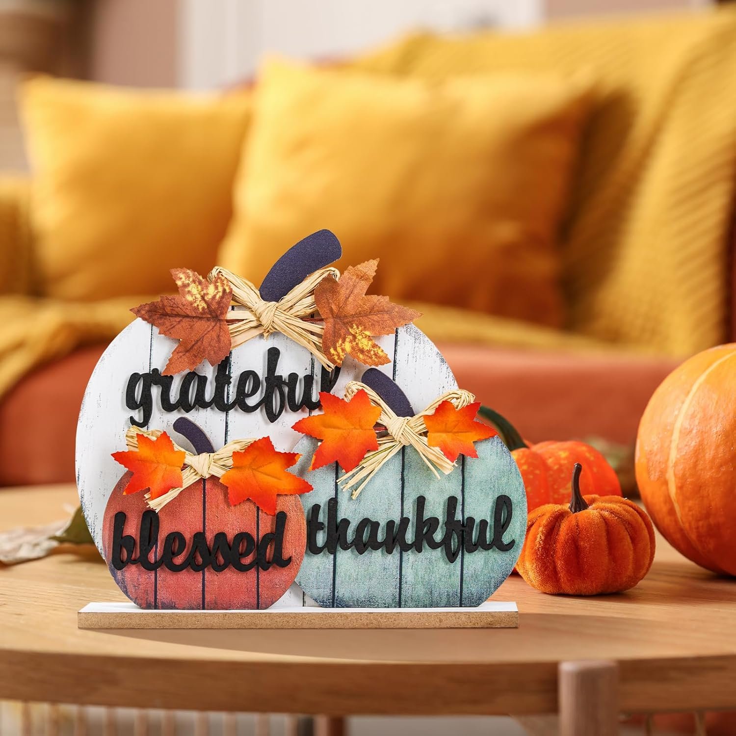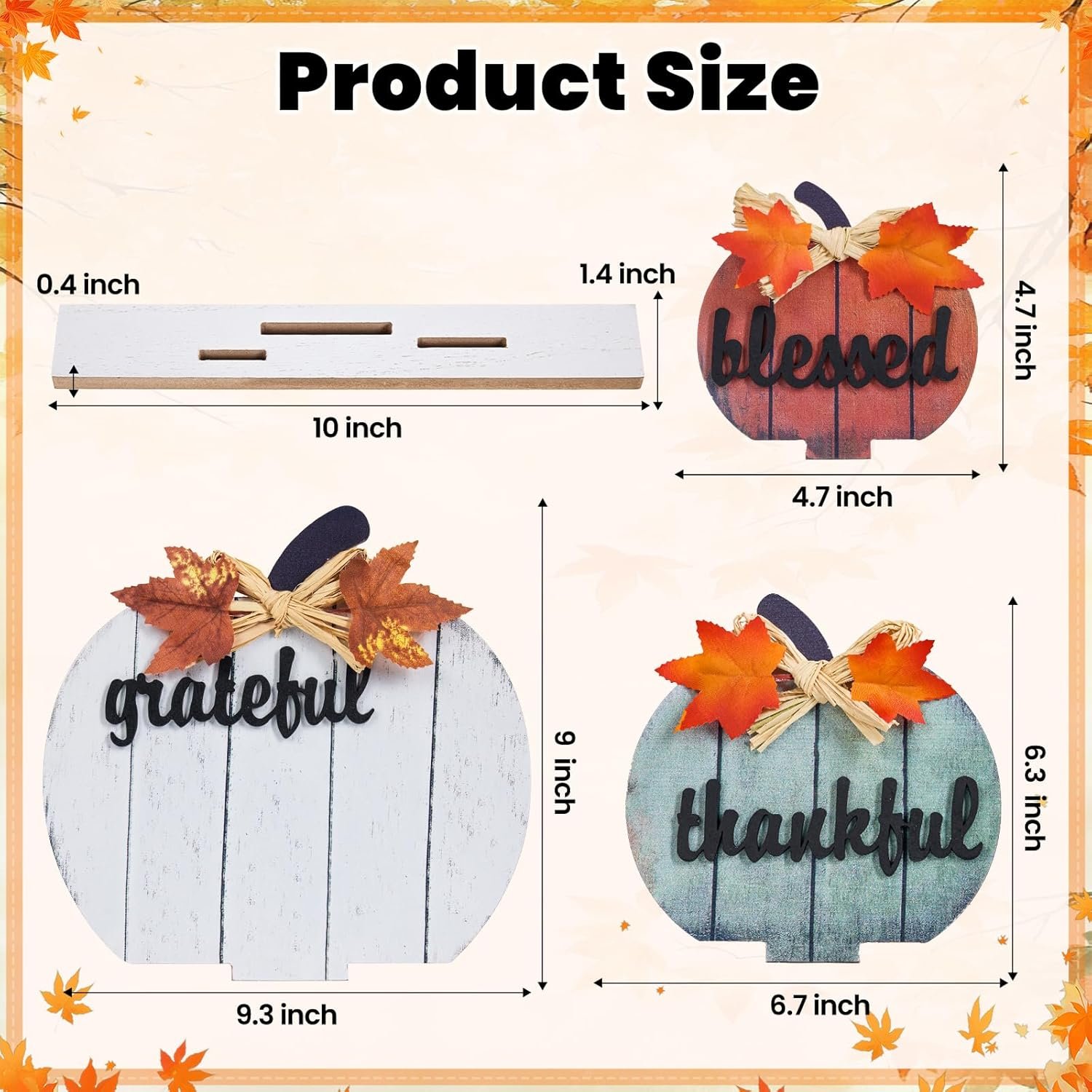 📏【Ideal Sizes】Our wood pumpkin sign measures approximately 9 W x 10 H inch, The set includes three farmhouse fall decor pieces:Grateful (9×9.3inch) Thankful (6.7*6.3inch) Blessed (4.7×4.7inch) Compact yet impactful, they’re designed for fall table decor, kitchen fall decor, bedroom accents, or office spaces without overwhelming your setup