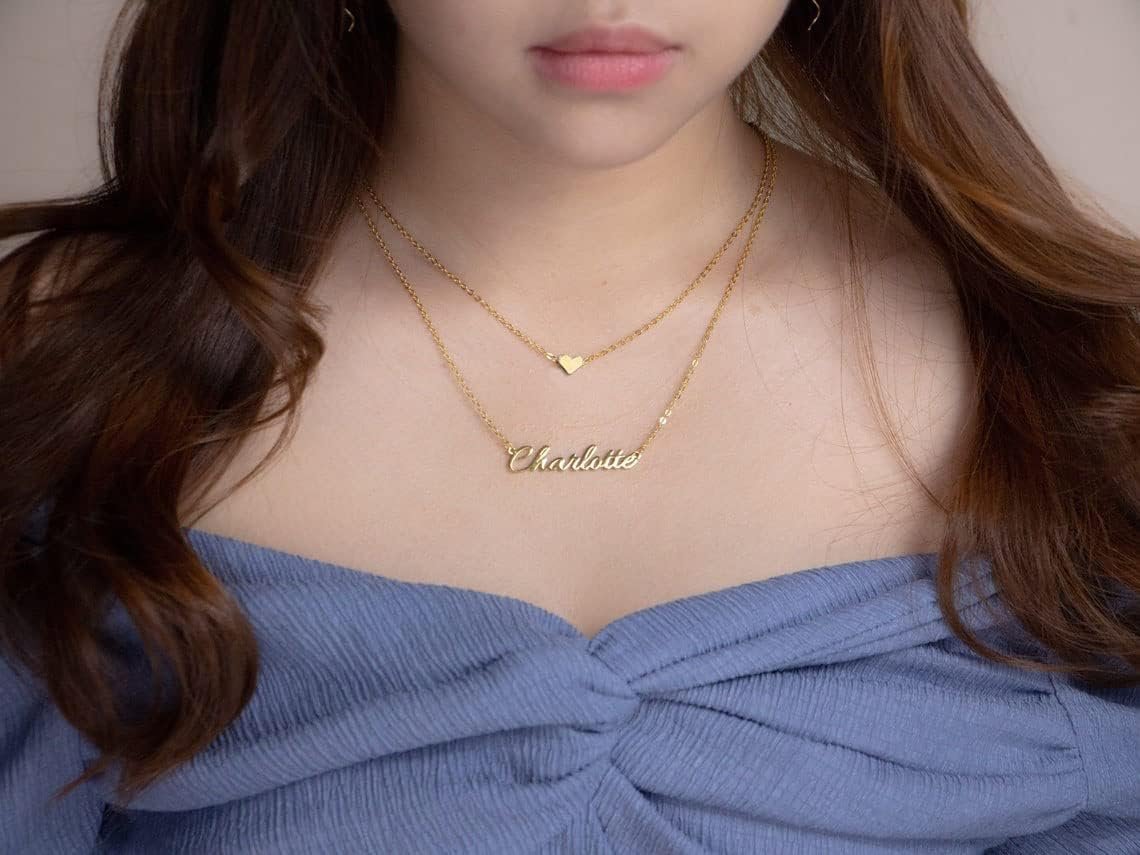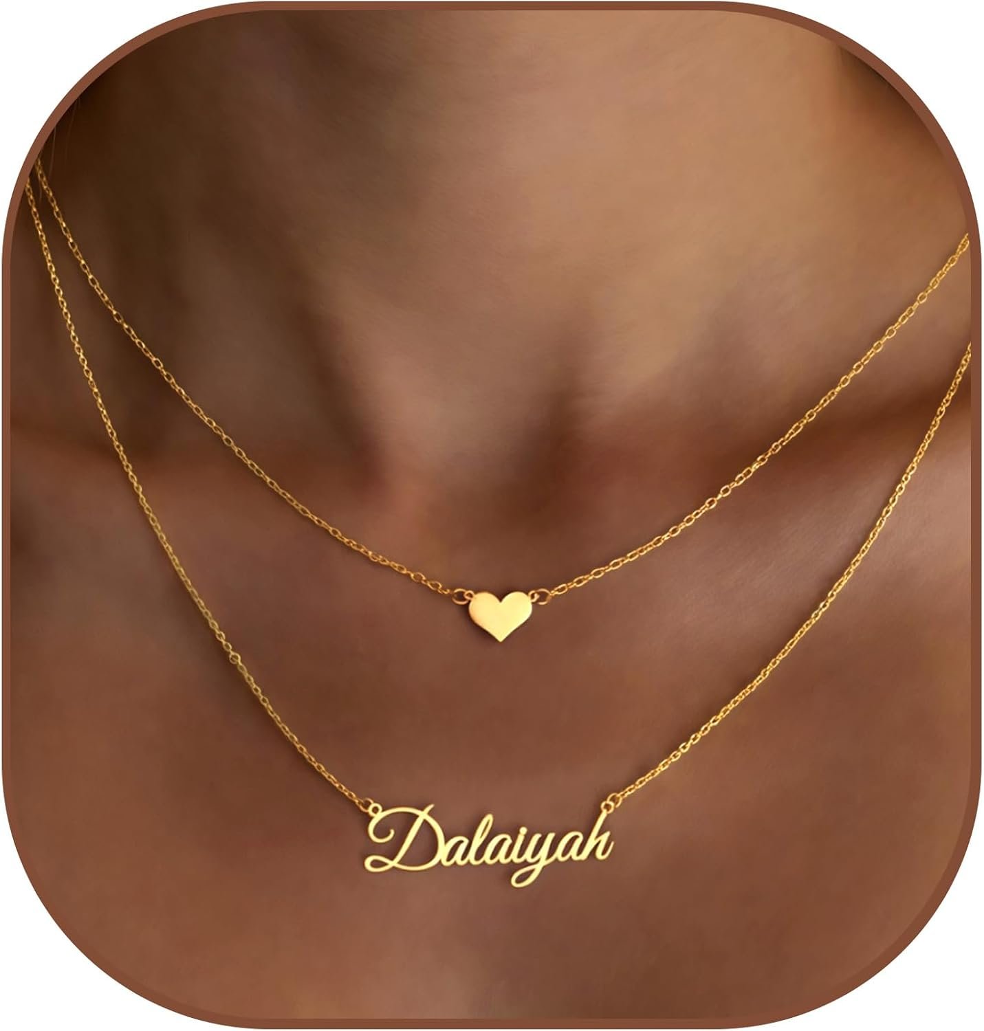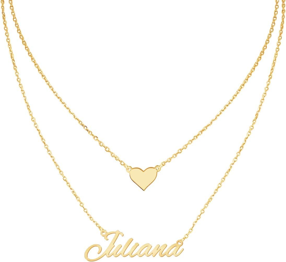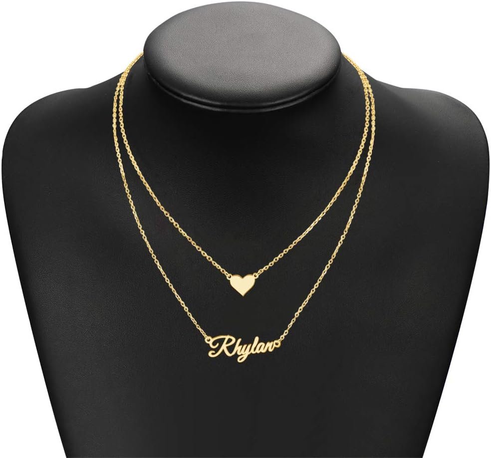 Custom Made with Any Name-Double layer heart name necklace is a classic way to make a statement.Fixed Chain Length Design-Double necklace features layered 14” and 16″+2” chains, dainty name necklace personalized.Personalized Jewelry Gifts for Women-Great gift for Christmas, Birthday, Anniversary, Mother’s Day, Valentine’s Day, Graduation, Wedding.Layered necklaces are extremely on trend right now, and we create personalized jewelry just for you. name necklacename necklace