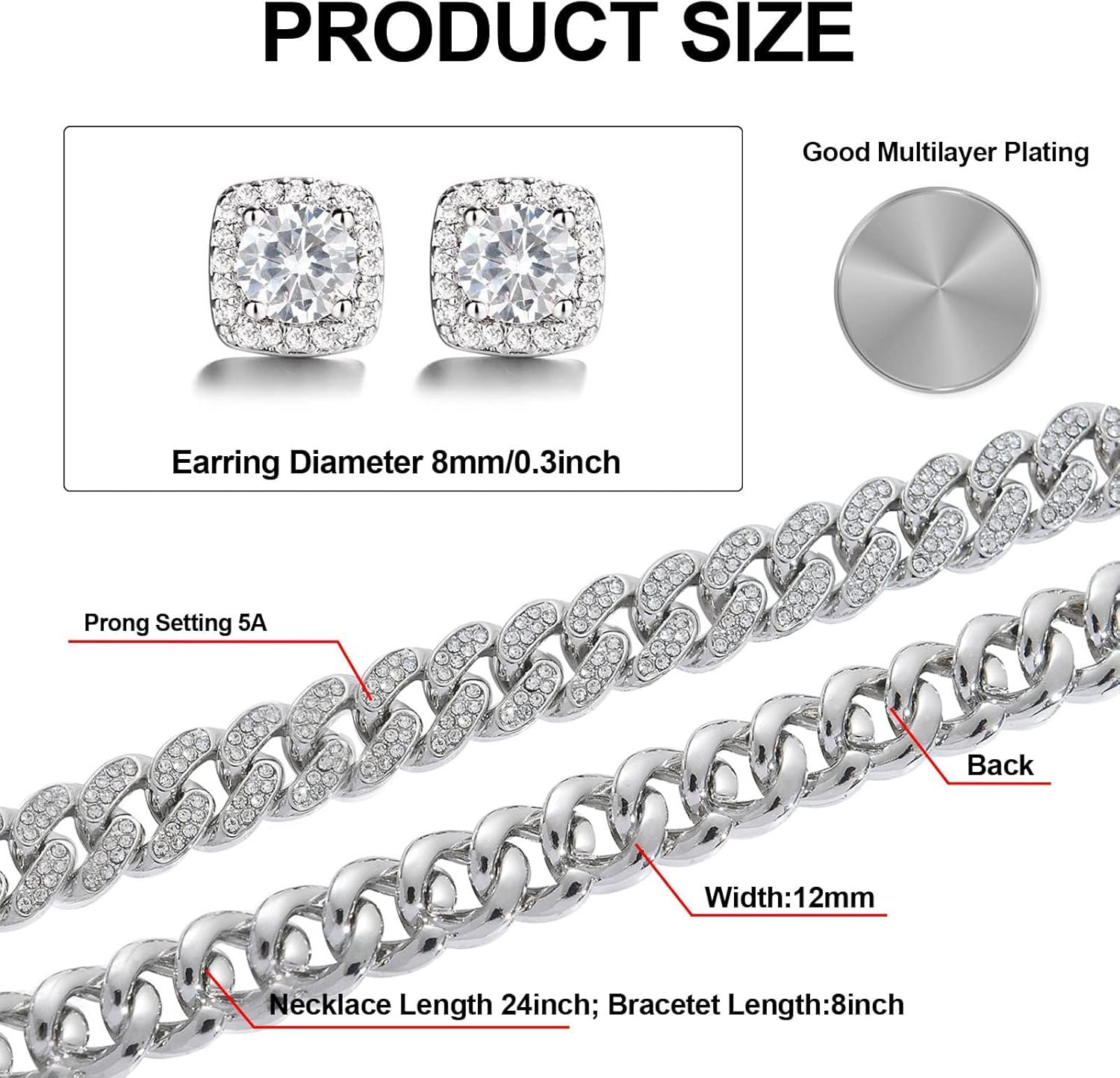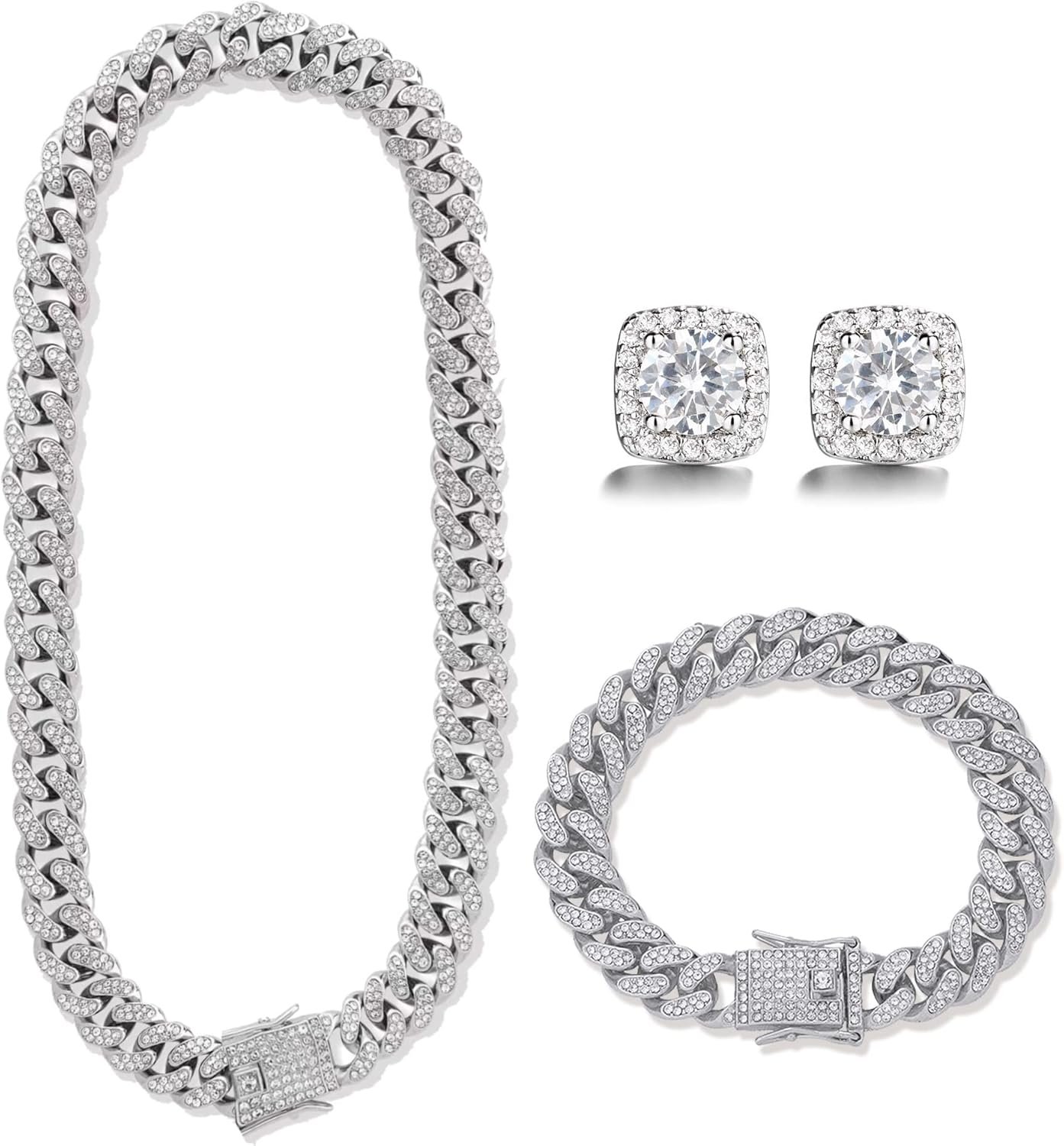 Cuban Link Chain Necklace Bracelets Earrings Set for Men and Women Chain Necklace for MenChain Necklace for Men