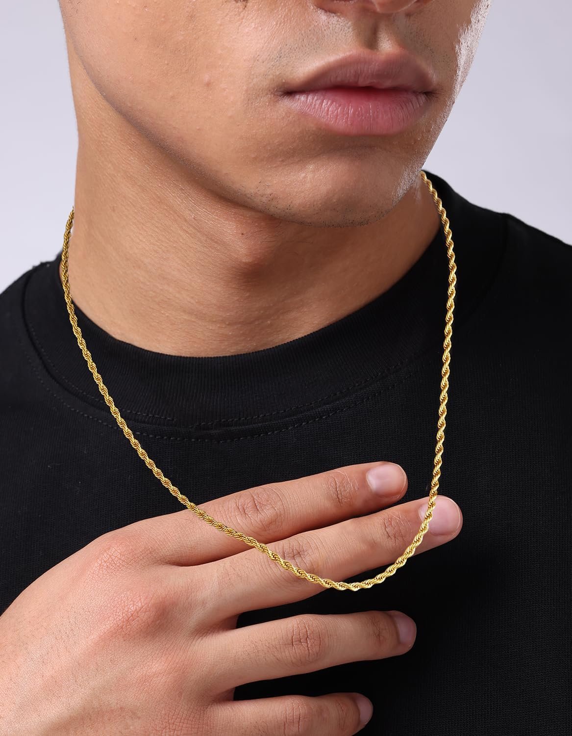 The video showcases the product in use.The video guides you through product setup.The video compares multiple products.The video shows the product being unpacked. silver gold chain Merchant Video