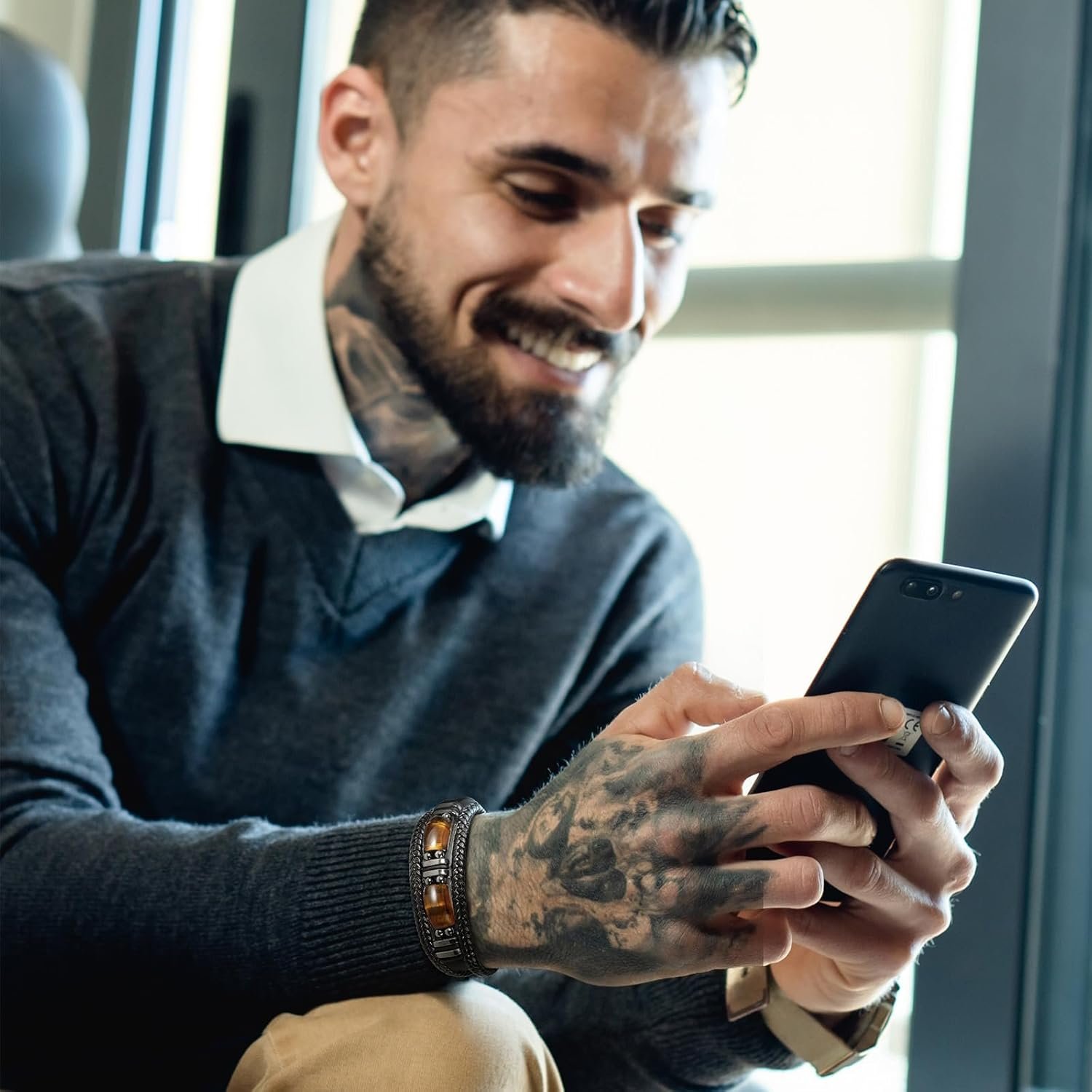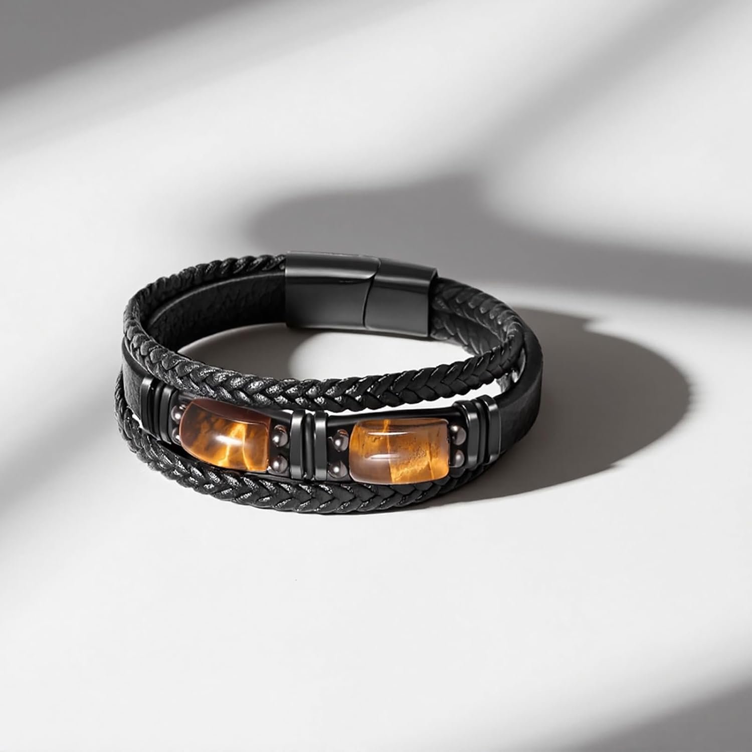 This tiger eye leather bracelet for men is a combination of fashion and nature. As a fashion gift, the black color is classic and unmistakable. At the same time the energy protection of tiger’s eye stone lets him know that the one who loves him is always around, making it an ideal gift for holidays and anniversaries for boyfriends husbands, ,fathers, sons.