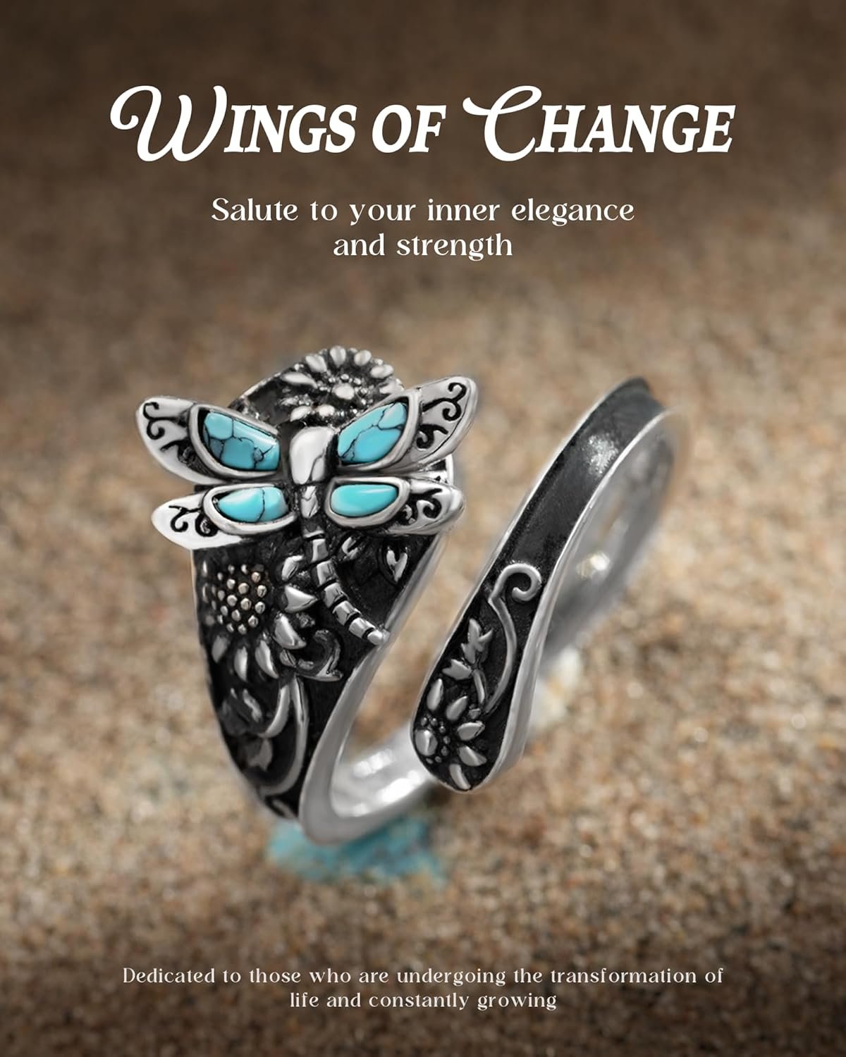 Customers love the ring’s beauty, particularly its turquoise and dragonfly design, and appreciate its quality and adjustable size. The ring fits well and is easy to adjust for different fingers. While some customers find it not flimsy and durable, others report it breaking in the middle and stones falling out after wearing a few times. The size receives mixed feedback, with some finding it petite while others say it’s smaller than expected.