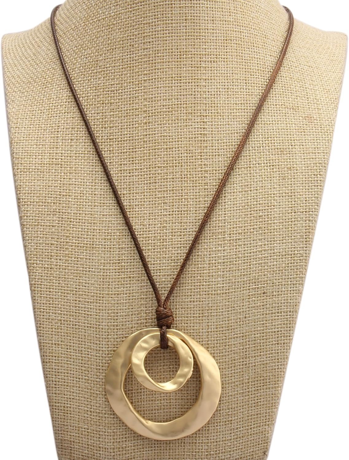 Long Pendant Necklaces for Women Bohemian Vintage Layered Leather Choker Necklace Gold Statement Pendant Boho Style Jewelry