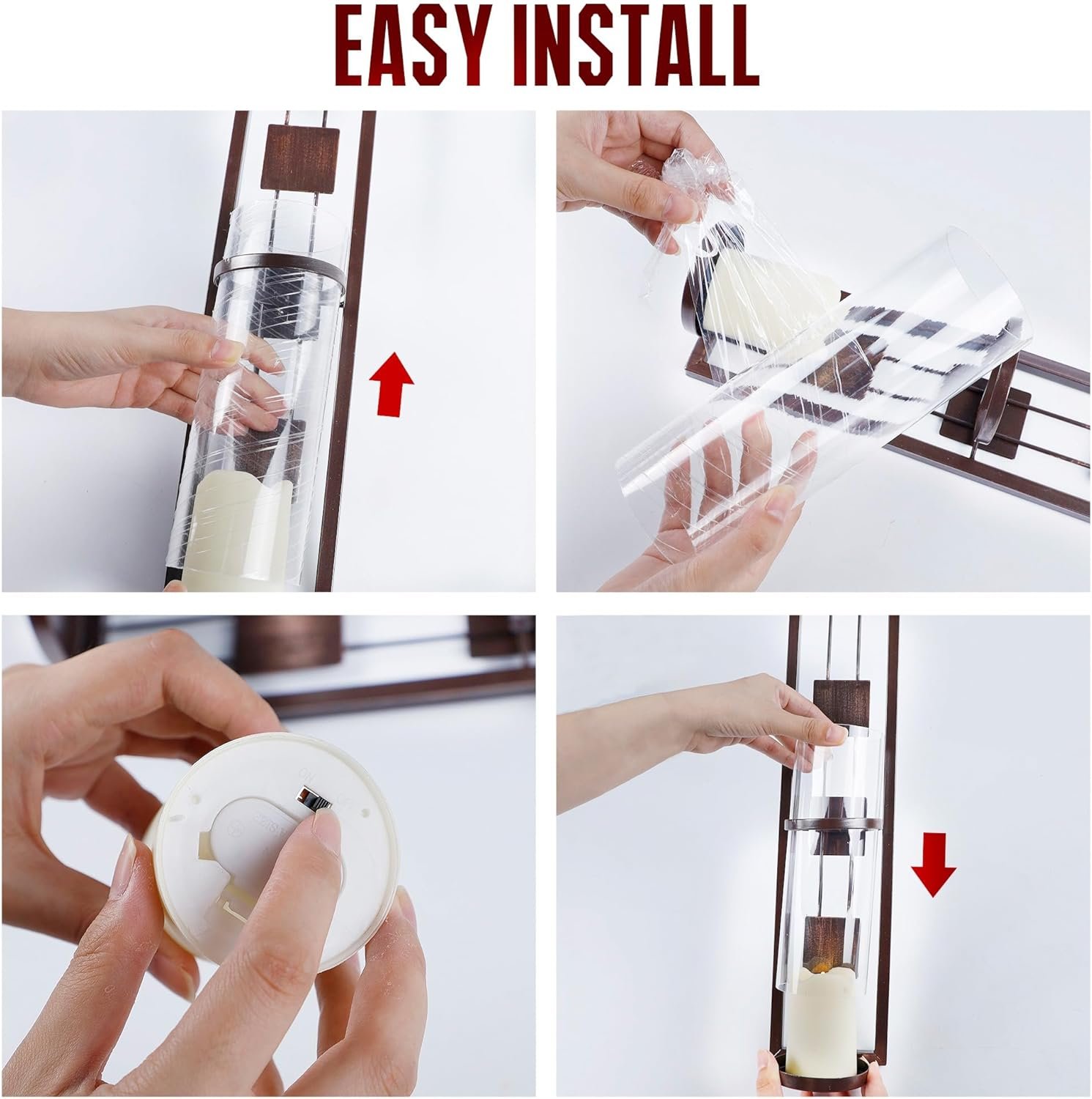 EASY TO INSTALL- Features lightweight and durable. Mount onto wall from front using screws. Install the battery for the candles. It is easy to install this hanging wall sconce.