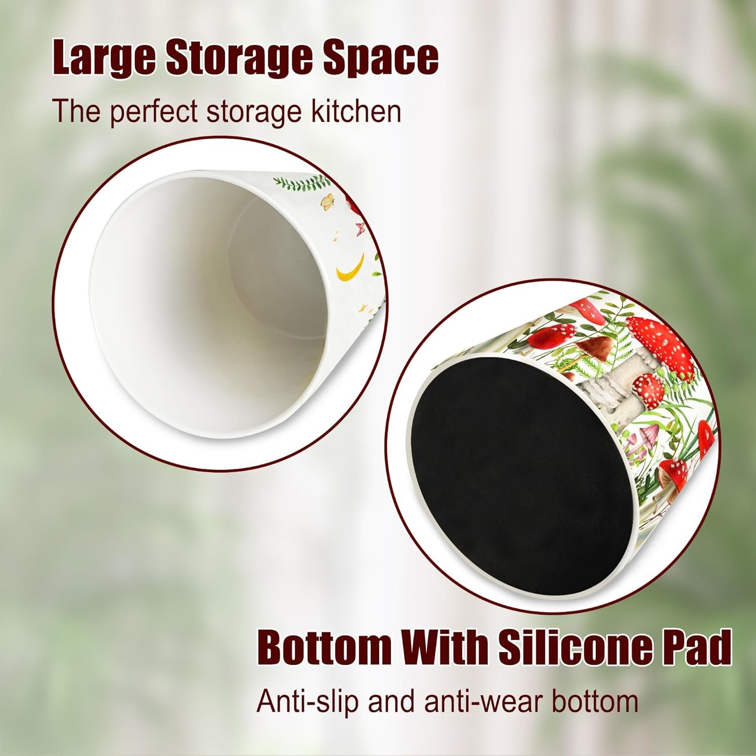 MULTIPLE SCENARIO APPLICATIONS HOME DECORATION: Mushroom-patterned ceramic storage bins are not only a good companion for the kitchen and dining room, but are also suitable for use as a living room desktop decoration or a small storage solution for the bathroom or study, adding a touch of artistry and practicality to different living spaces