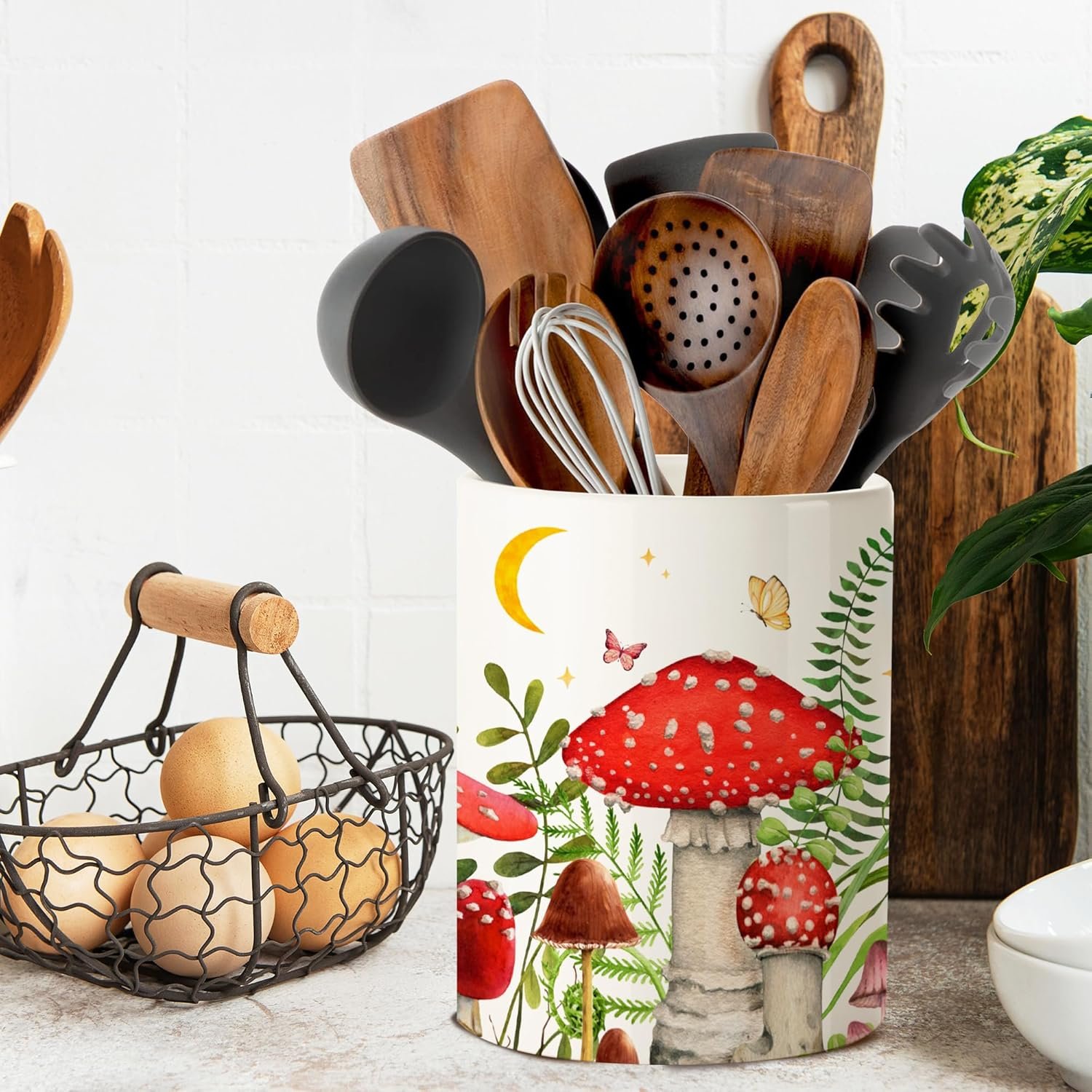 BEST KITCHEN DECORATION: The mushroom utensil holder designed for the kitchen is not only a decorative work of art, but also a good helper for kitchen organization. Whether you want to store baking tools, tableware or sweets, it can be easily categorized, so that your kitchen space will be in order, and you can enjoy the fun of cooking without worrying about the clutter.