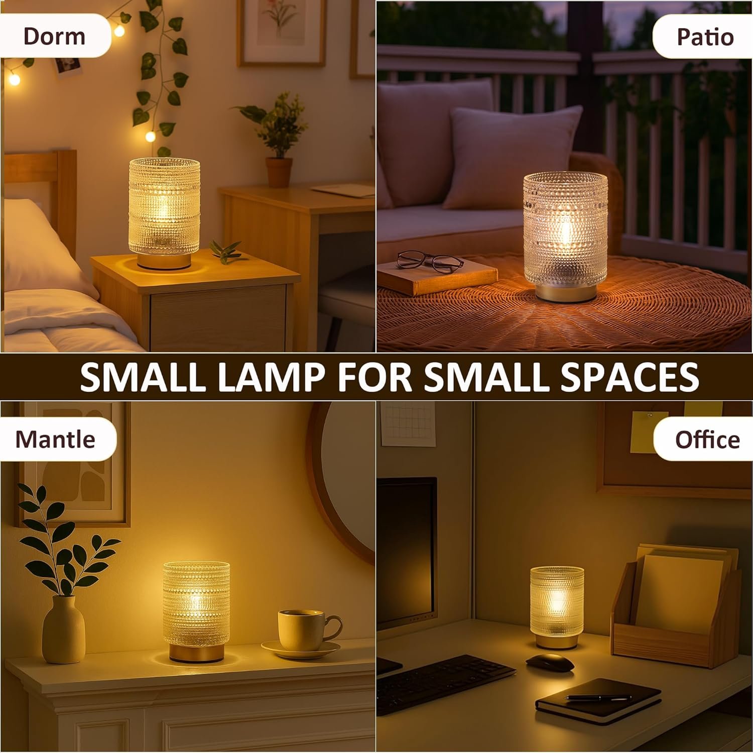 ✅ 【𝗦𝗠𝗔𝗟𝗟 𝗘𝗠𝗕𝗢𝗦𝗦𝗘𝗗 𝗚𝗟𝗔𝗦𝗦 𝗧𝗘𝗫𝗧𝗨𝗥𝗘𝗗 𝗔𝗘𝗦𝗧𝗛𝗘𝗧𝗜𝗖 𝗟𝗔𝗠𝗣】 Say goodbye to harsh, glaring LED bulbs. This small but stylish lamp stands just 5.9″” *3.9″” inch, making it a charming accent for shelves, nightstands, windowsills, or desks without taking up much space. The small accent warm light creates a soft warm ambient glow light, forming a relaxing nook while avoiding the cheap texture made of plastic. Whether you’re setting the mood for a child’s bedtime, creating cozy evening vibes,lighting your space for meditation, or just winding down after a long day—this cute battery desk lamp turns any corner into a soft, welcoming retreat.