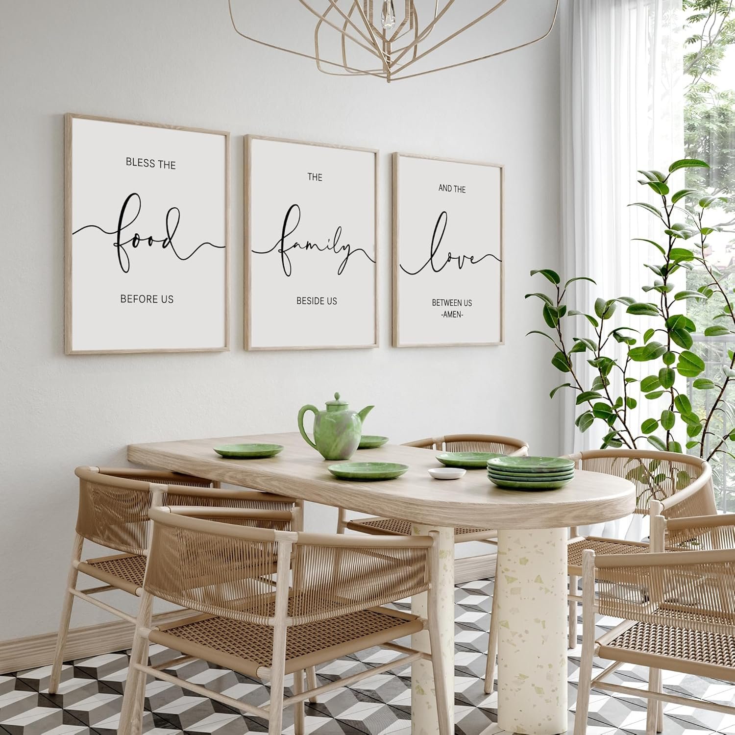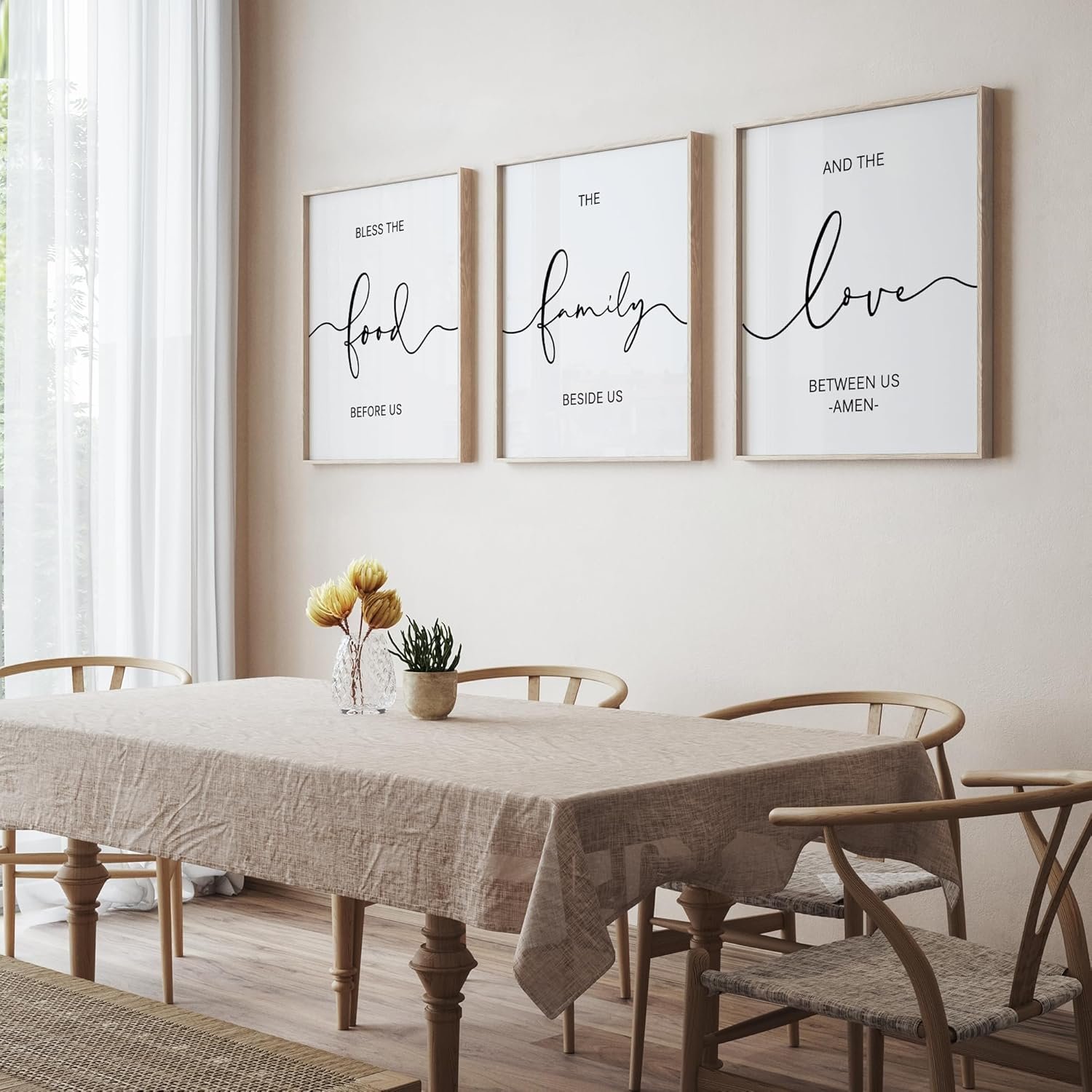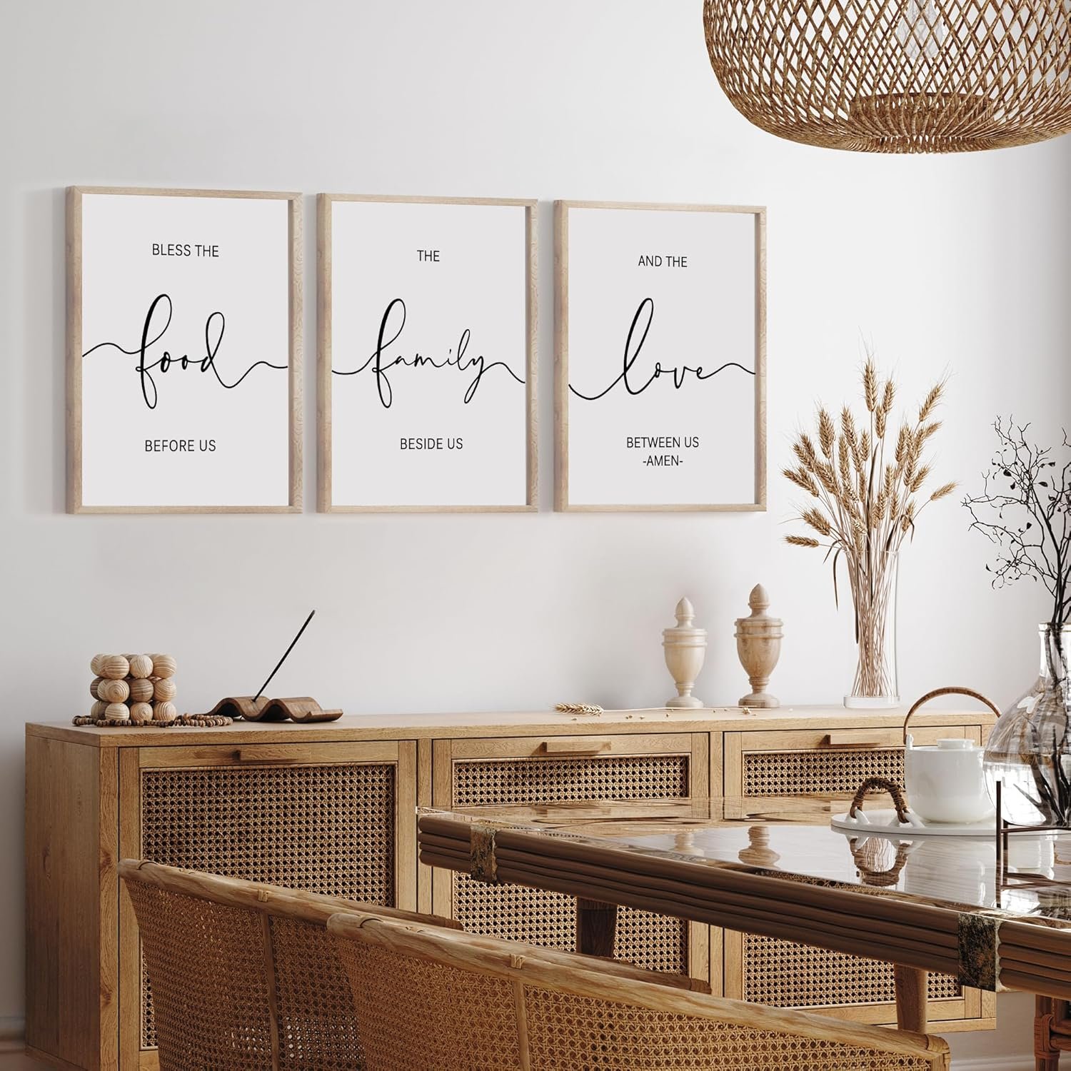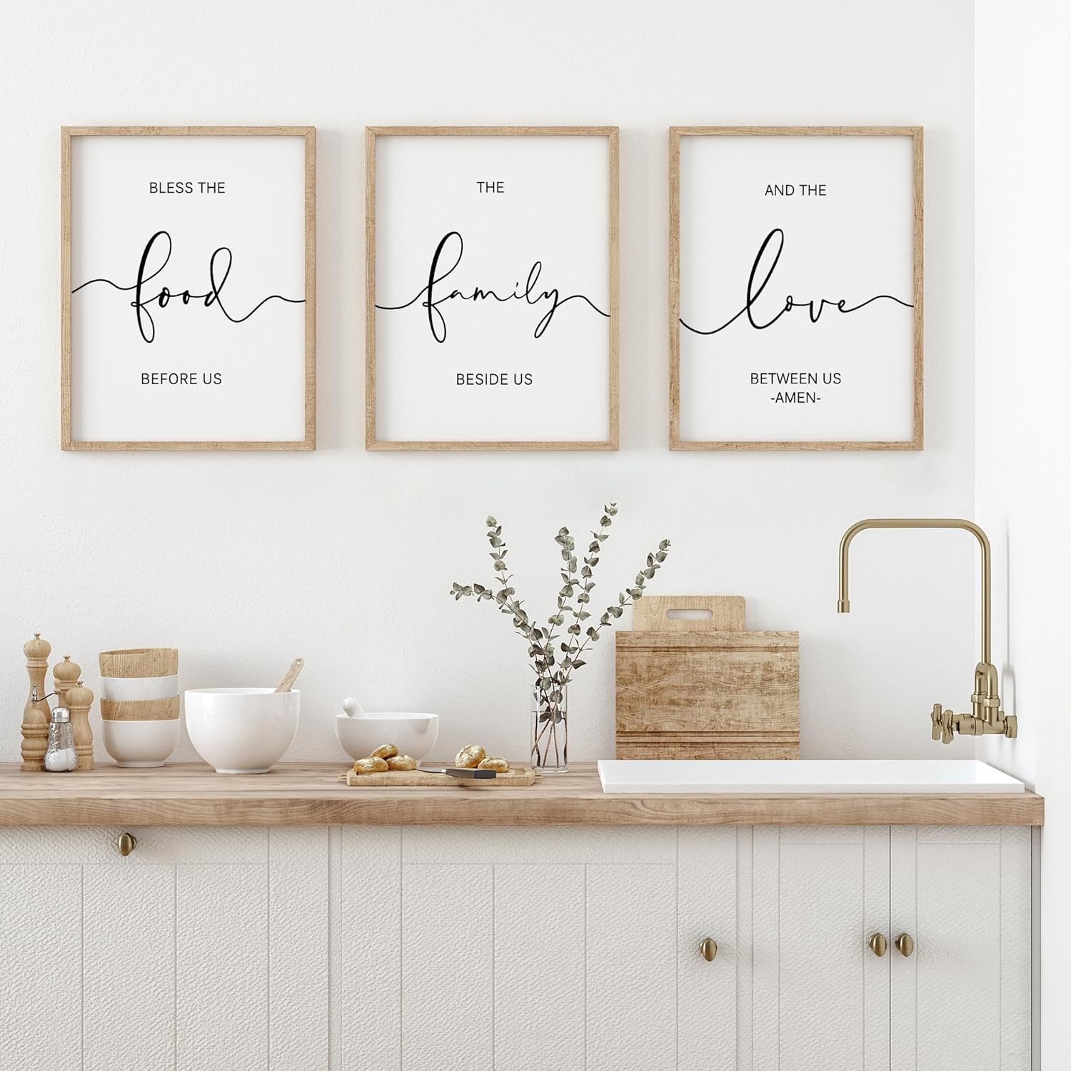 GREAT NEUTRAL ADDITION TO KITCHEN DECOR: “Bless The Food Before Us”, “The Family Beside Us”, “And The Love Between Us” each phrase of the phrase is separated, as it gives a unique look. Modern farmhouse style combines rustic decor with modern elements. The kitchen wall decor sign fits right in with any farmhouse and early Americana style for kitchen & dining room decor.