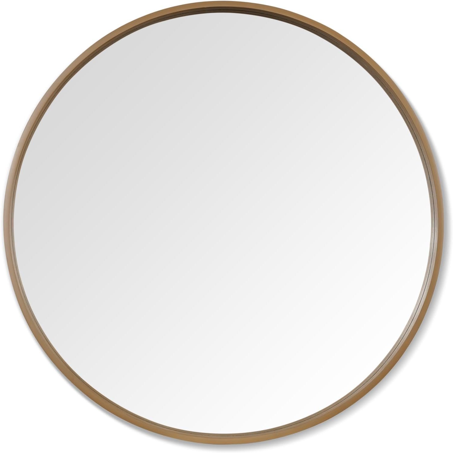 WallBeyond Round Wood Mirror, 32″ Round Modern Decoration Large Circle Wall Mirror for Bathroom Living Room Bedroom Entryway, Honey