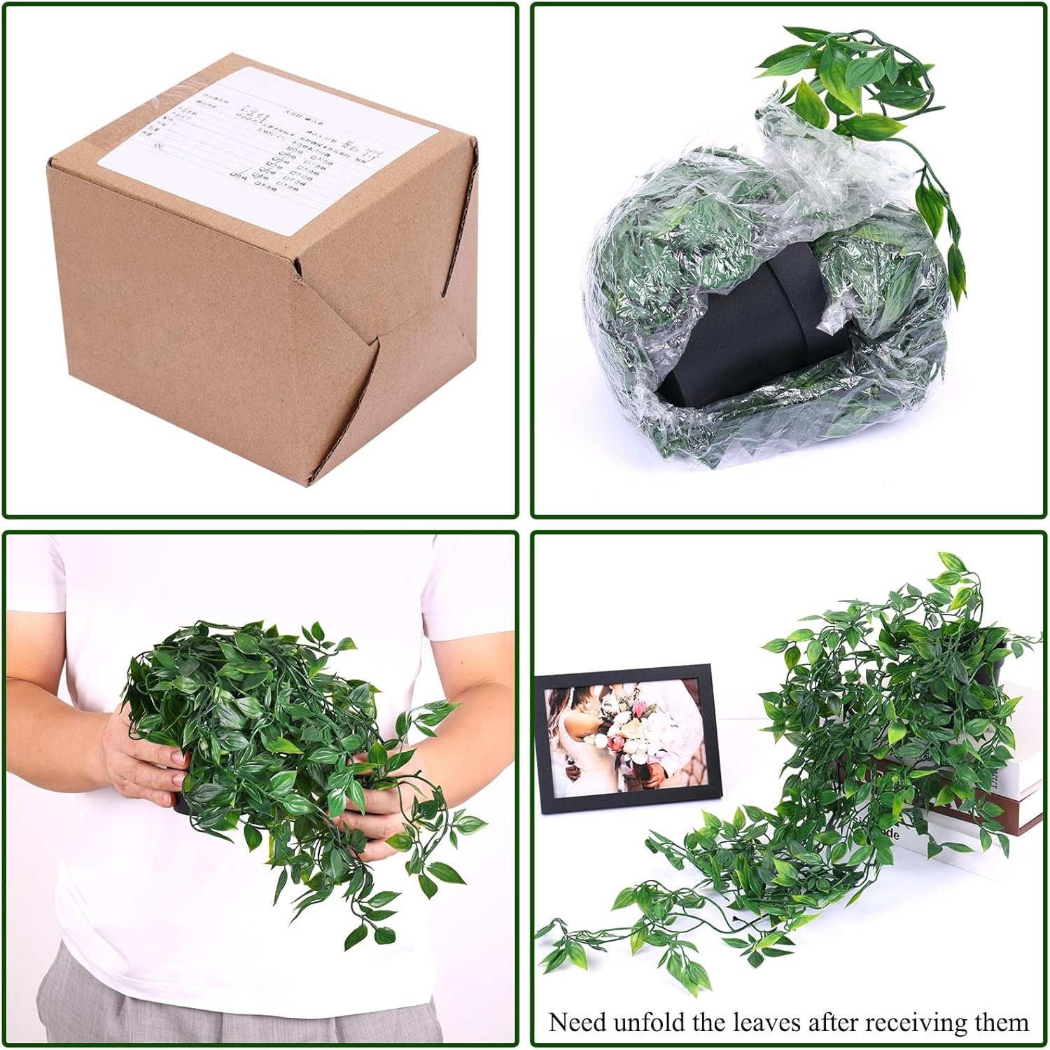Artificial Hanging Plants: These leaves are made of plastic. This plant is waterproof, it does not fade easily.