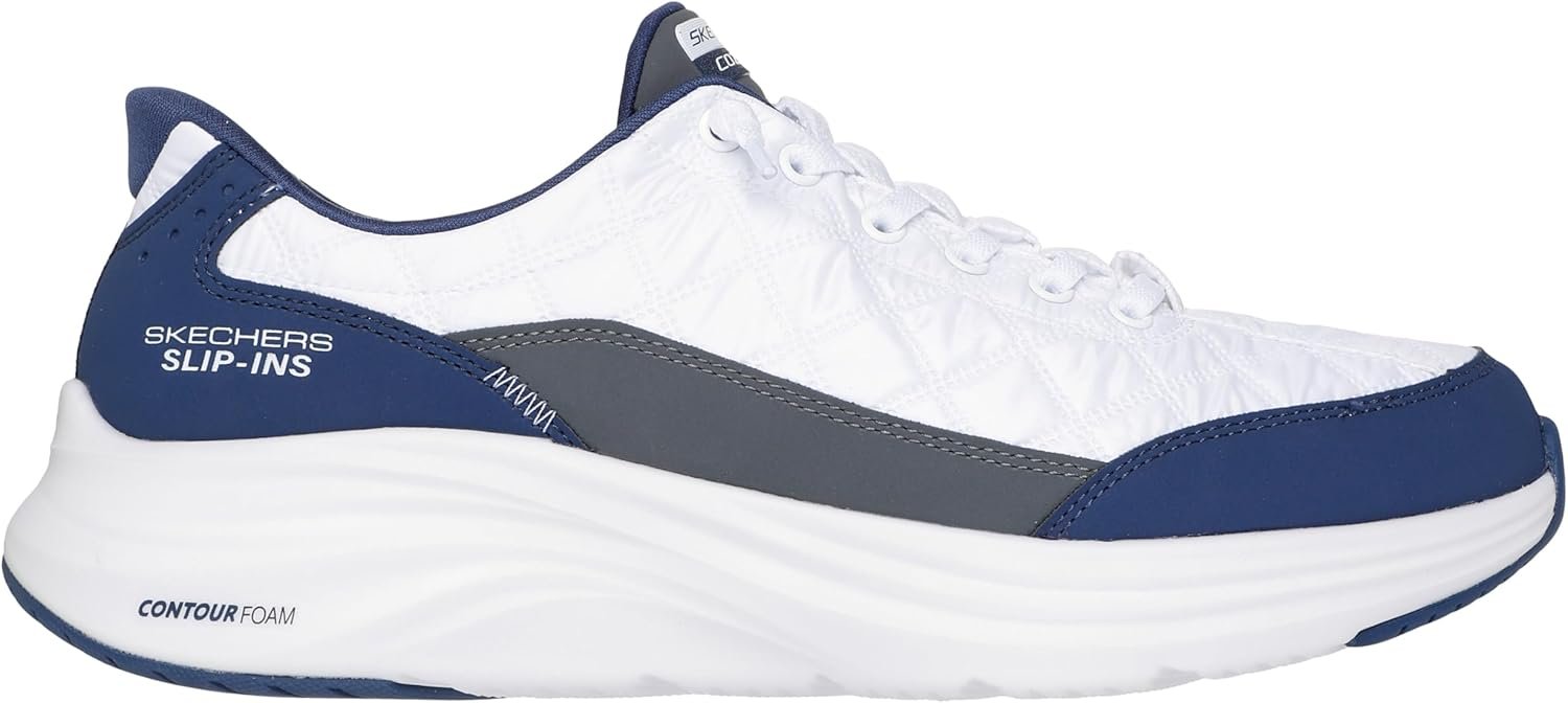 Make a move in flexible comfort wearing Skechers Hands Free Slip-ins: Contour Foam Cozy Fit. Designed with our exclusive Heel Pillow, this lace slip-on style features a breathable deconstructed quilted mesh upper with a Skechers Air-Cooled Memory Foam comfort insole and a cushioned midsole.