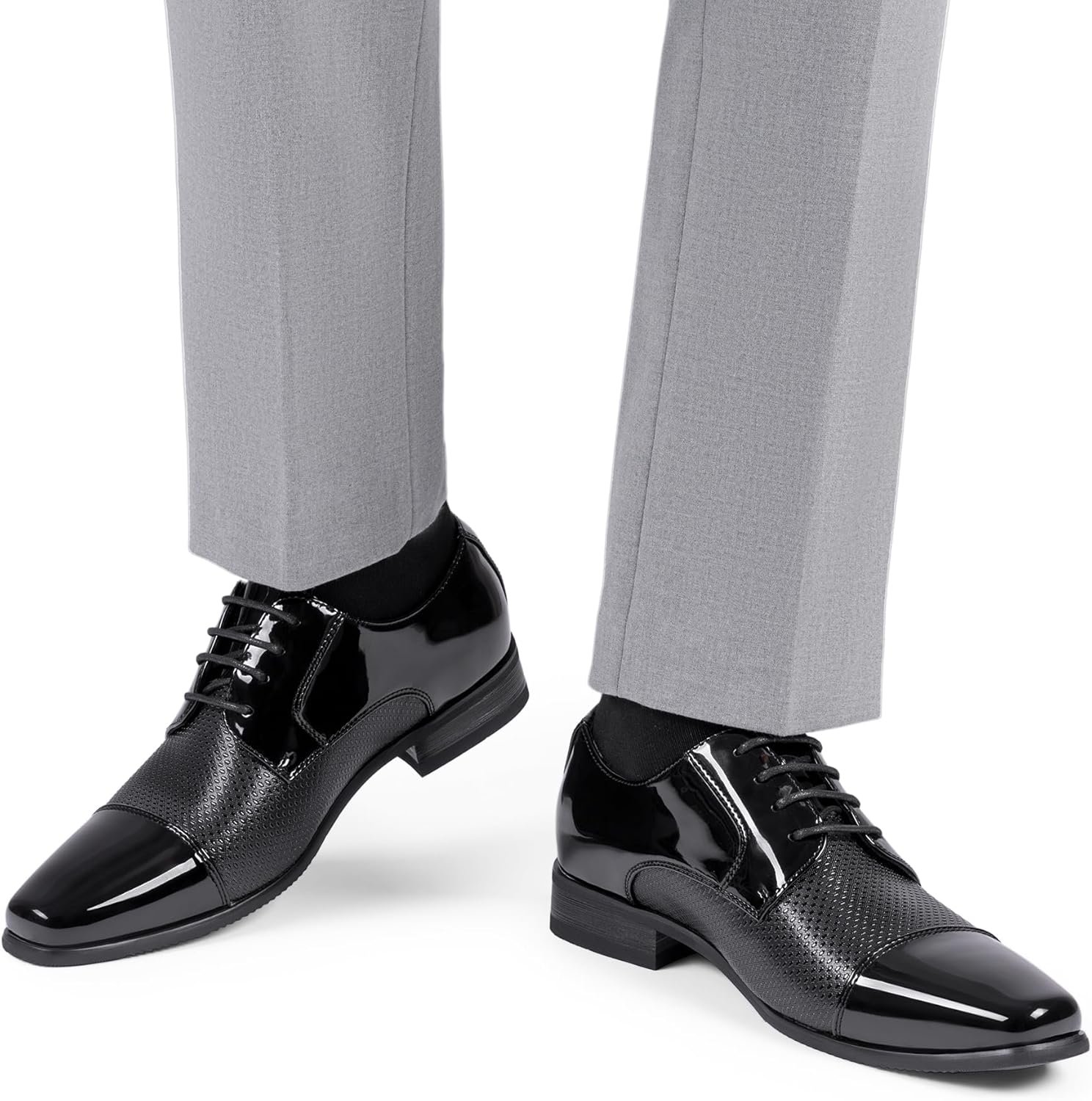 Customers find these dress shoes to be a great value for money, with good looks and well-made construction. They are comfortable, with one customer noting plenty of room for wide feet, and feature cushioned insoles that feel good on wide feet. The shoes receive positive feedback for their appearance, with one customer describing them as a perfect blend of luxury. However, customers report issues with scuff marks on the back and discolored laces.
