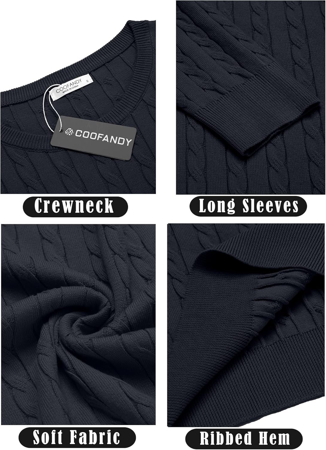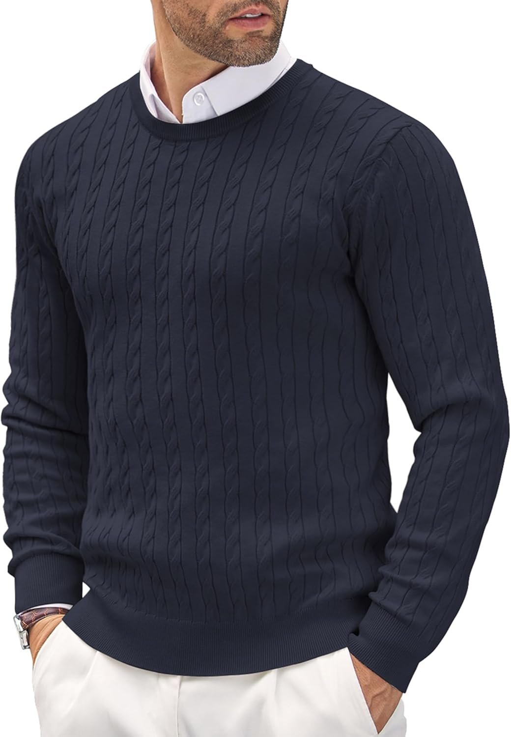 COOFANDY Men’s Crew Neck Sweater Lightweight Slim Fit Cable Knit Sweaters