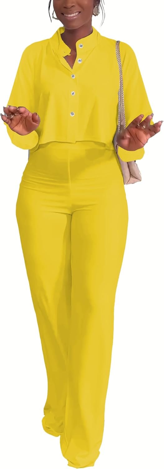 design:Two Piece Sets For Women Featuring A Collared Shirt/Dropped Shoulder Sleeves/Button Down Shirts/Elastic High-Rise/Elastic Sets/Wide Leg Long Pants/ A Casual Tracksuit Is Suitable For Most Occasions 2 Piece Outfits For Women Is A Good Choice For Your Wardrobe