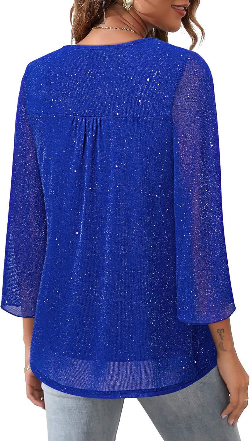 blouses for women dressy casual Trendy Sheer Sleeve Top for women