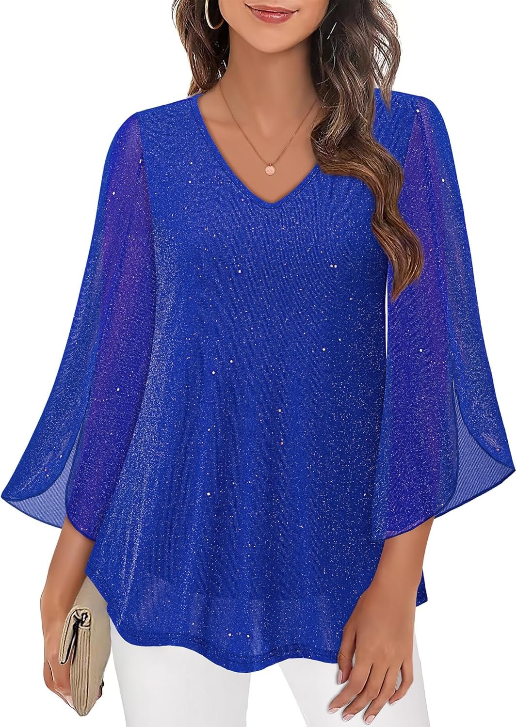 This Split 3/4 sleeve tunic top is designed to show off your best features.Easy to hide tummy with loose double layer